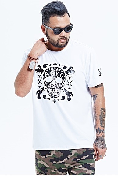 חולצת גבר עם הדפס גולגולת לבנה
